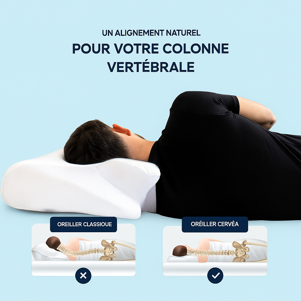 L’oreiller ergonomique épouse parfaitement la courbure naturelle du cou. Il maintient la tête et la nuque alignées avec la colonne vertébrale, ce qu’un oreiller classique ne fait pas toujours. Résultat : moins de tension, plus de confort.